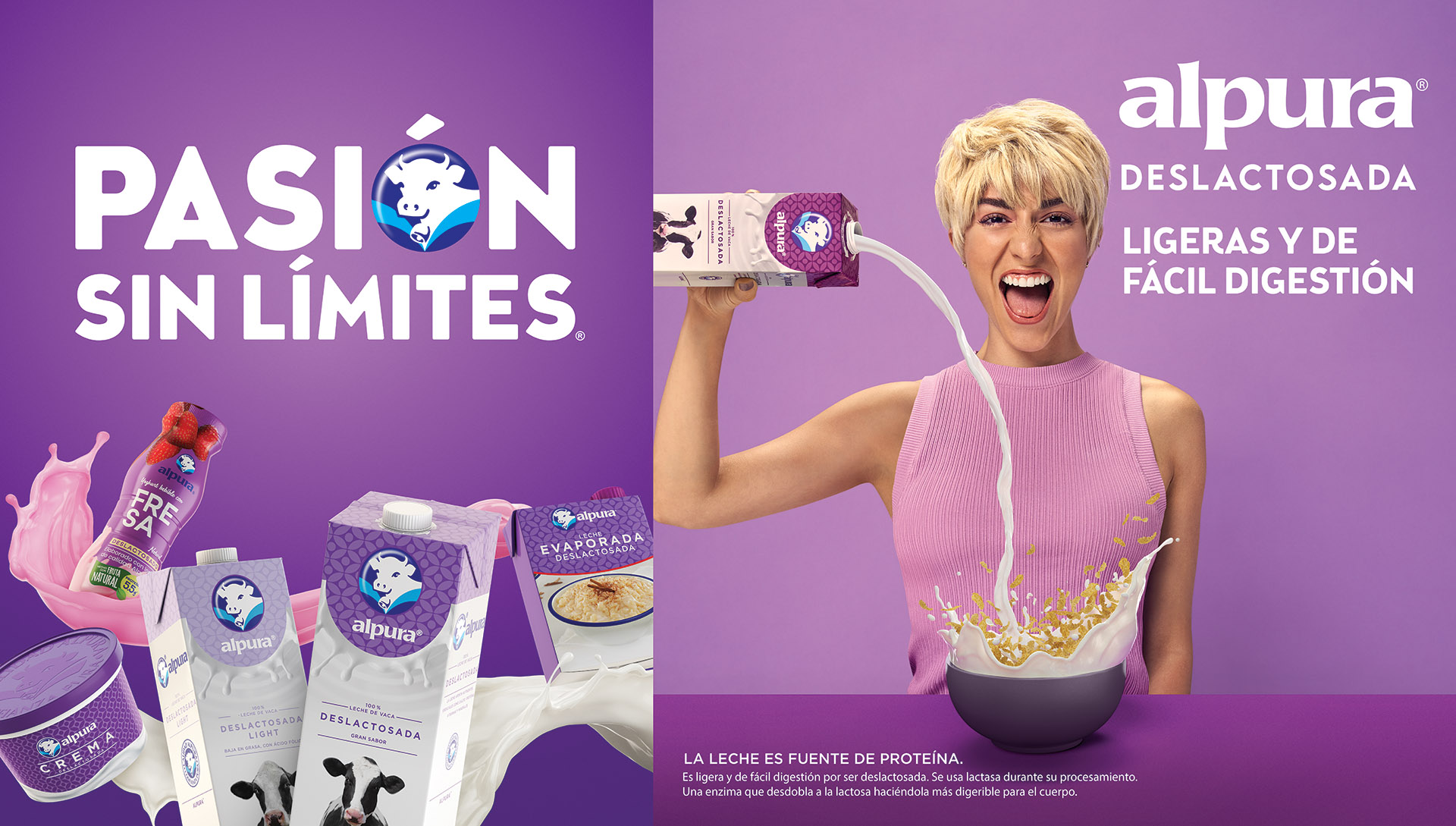 La campaña “Alpura Deslactosada, Pasión sin Límites” se transmite en televisión nacional, TV Local (CDMX, GDL, Mérida y MTY), OOH y Digital.