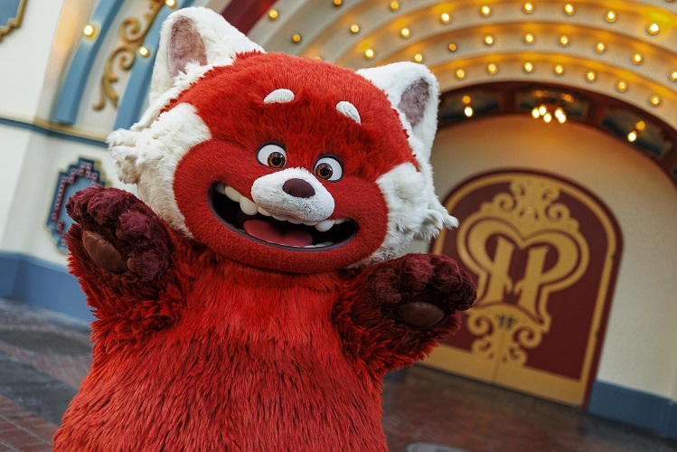 Conocer por primera vez a Mei Panda de Turning Red de Pixar Animation Studios, en el Pixar Pier Band Shell, en su forma completa de panda rojo.