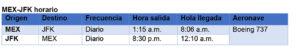 A partir del 4 de noviembre, American Airlines iniciará una nueva ruta diaria desde el Aeropuerto Internacional de la Ciudad de México (MEX) a Nueva York (JFK). La nueva ruta operará un vuelo diario en un avión Boeing 737, con capacidad para 172 pasajeros.