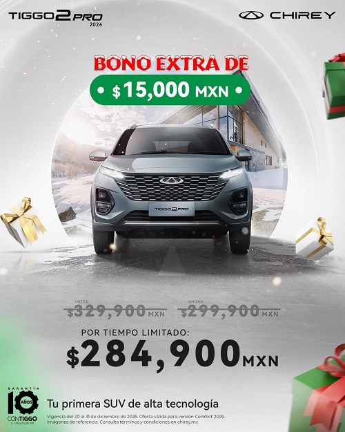 Además, ya está activa la campaña de prueba de manejo navideña con obsequios especiales. Otros modelos como TIGGO 2 PRO 2026, TIGGO 7 PHEV CSH 2026 y TIGGO 4 PRO 2026 también ofrecen descuentos adicionales por temporada.
