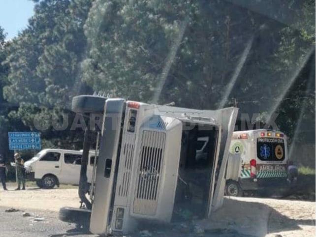 El accidente ocurrió cuando por evitar chocar contra un vehículo marca Nissan tipo Tsuru, el conductor de un volteo perdió el management de la pesada unidad, lo que provocó que se impactara contra una unidad tipo Urvan del servicio público.