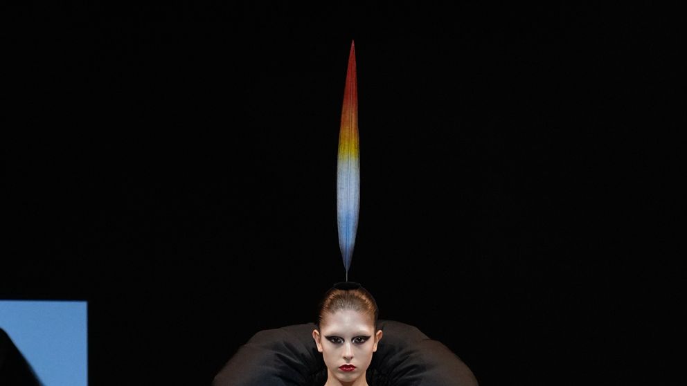 La colección se adentra en un universo casi surrealista, donde lo extravagante se encuentra con lo exquisito. Los vestidos, llenos de dramatismo, presentan volúmenes exuberantes y detalles meticulosos. Cada pieza se construye como un cuento; las siluetas, que rozan lo onírico, llevan al espectador a un laberinto de formas y colores que desafían las convenciones de la moda actual.