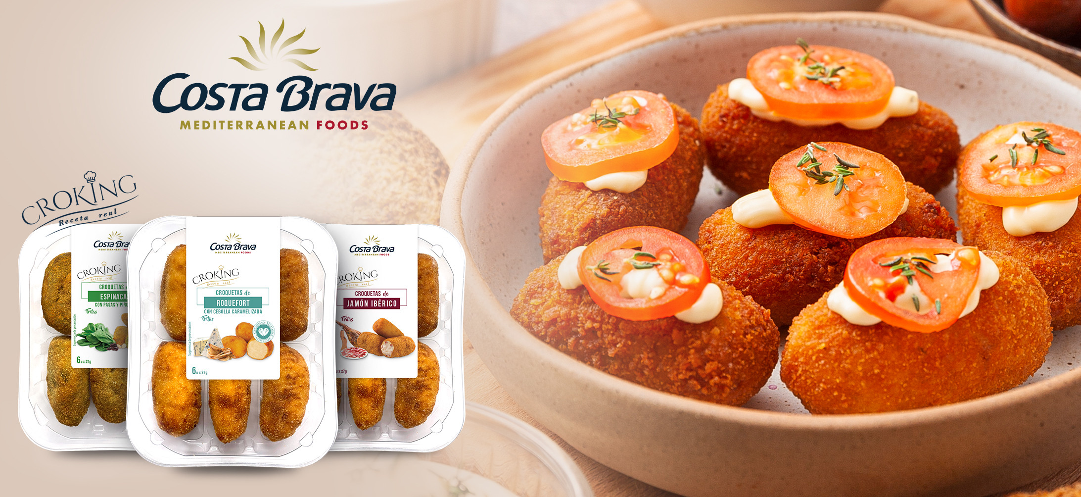 Costa Brava Mediterranean Meals lanza su nueva colección de croquetas de autor Croking elaborada con recetas artesanales. Croking alcanza 17 sabores con tres versiones por cada uno (frescas, fritas o congeladas) lo que supone 51 referencias.