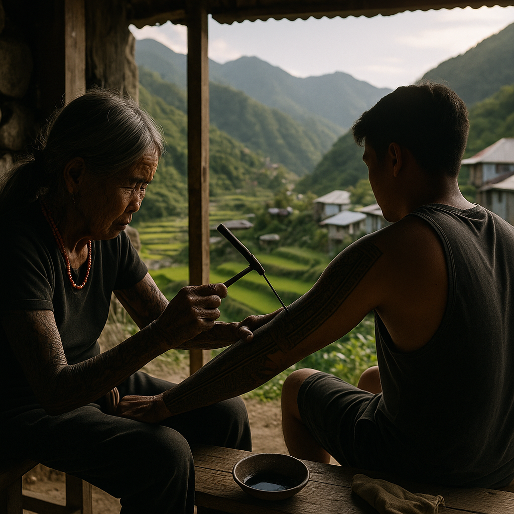 El viaje a Buscalan me llevó a conocer a la reconocida artista Whang-Od, la última tatuadora de la tradición Kalinga, cuyos diseños son más que simples dibujos; son un legado cultural, huellas de un pasado glorioso. Sentarse a su lado mientras me contaba historias de su arte y de su vida fue un privilegio que no solo me inspiró, sino que también me hizo reflexionar sobre la importancia de preservar nuestras tradiciones.