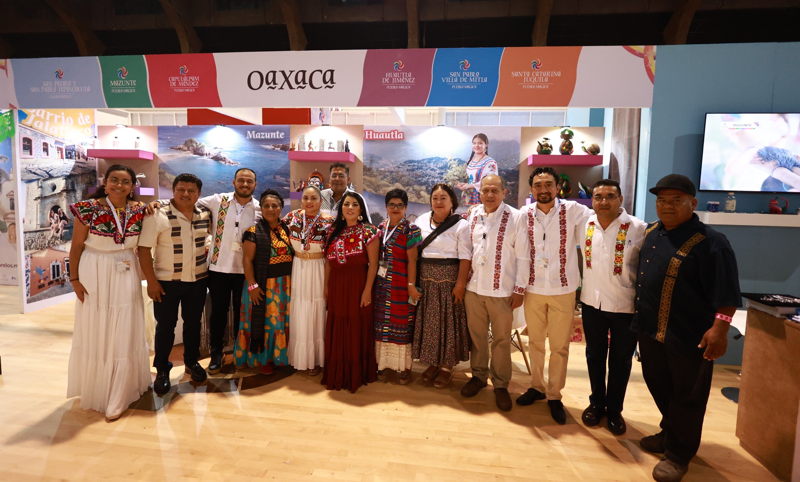 Uno de los puntos más destacados fue el stand de Oaxaca, que se convirtió en una ventana al fascinante mundo de sus pueblos mágicos. Entre ellos, destacaron lugares como Huautla de Jiménez, con su tradicional curanderismo y artesanías; San Pablo Villa de Mitla, reconocido por su zona arqueológica y tapetes hechos a mano; y Santa María Huatulco, ofreciendo sus hermosas playas y biodiversidad marina.