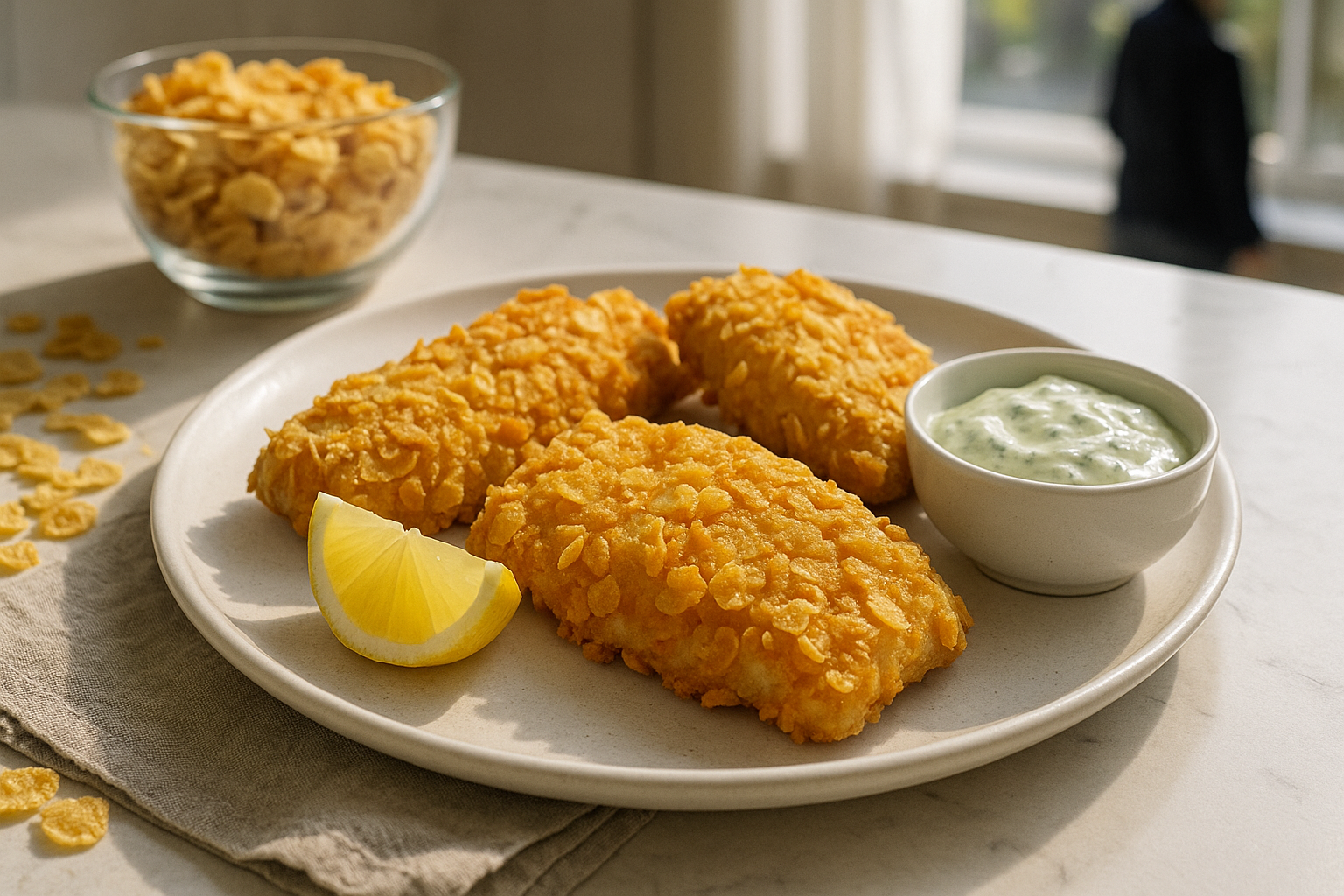 Imagina una carne de pescado jugosa y fresca, perfectamente rebozada en una mezcla de cornflakes que no solo le aporta un crujido irresistible, sino un sabor que evoca la calidez de la cocina casera. Este platillo no solo es un deleite para aquellos que disfrutan de la pesca, sino un deleite para los amantes de la cocina creativa que buscan algo más que lo tradicional.