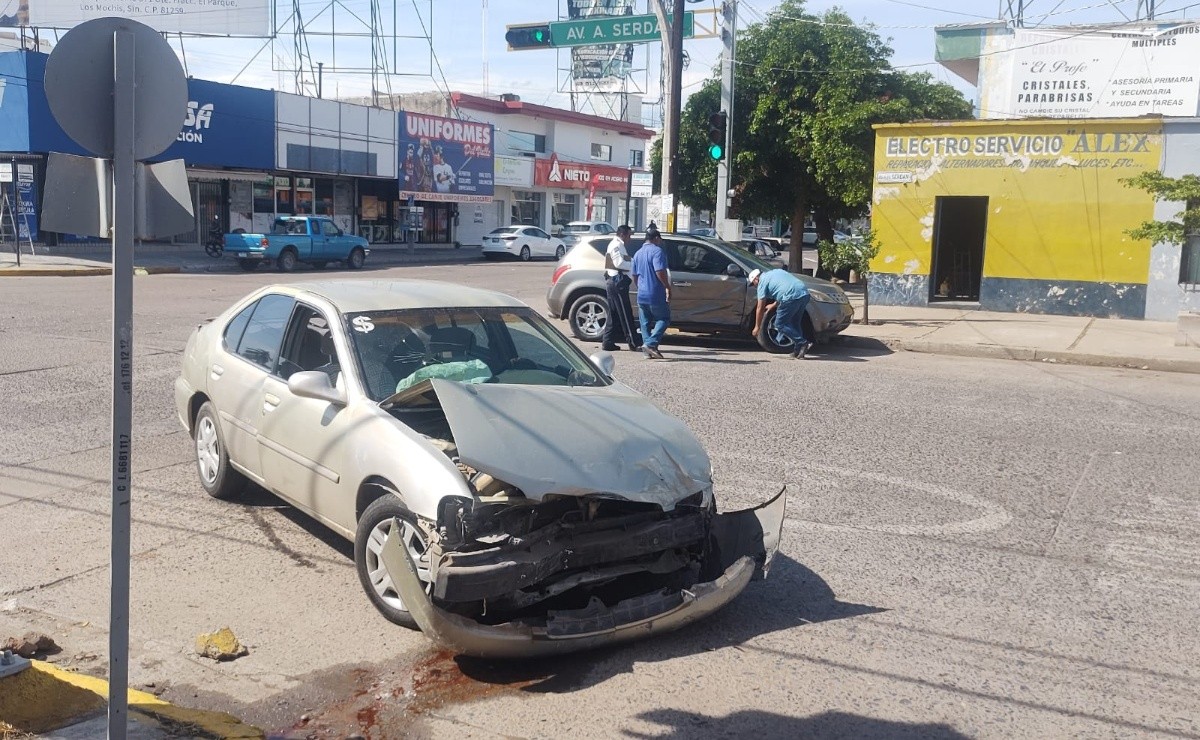 Los Mochis, Sinaloa.- Dos vehículos chocaron la mañana de este sábado en un transitado crucero de la ciudad, donde los semáforos funcionaban correctamente.