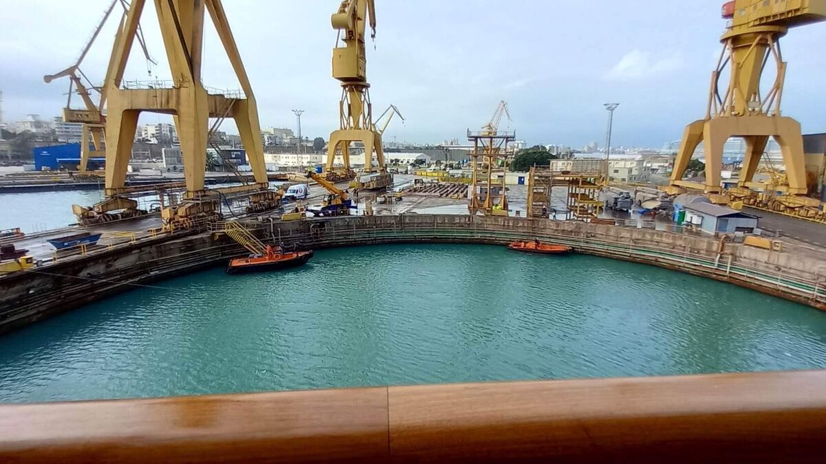 Así, tal y como estaba previsto, a primera hora de la mañana de este miércoles, Navantia procedía al llenado de su dique cuatro para poder, así, retomar este singular trayecto y poner rumbo al puerto británico de Southampton, donde tiene programada su llegada poco antes de las cuatro de la madrugada del viernes al sábado.
