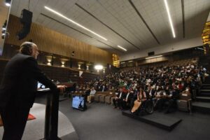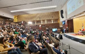 Ante un aforo de más de 300 jóvenes, compartió su trayectoria de 51 años en el sector turístico, tiempo en el que se enfrentó a adversidades y ante las cuales no se rindió, lo que le permitió alcanzar los logros y metas que se propuso desde temprana edad, siempre con la motivación de la familia.
