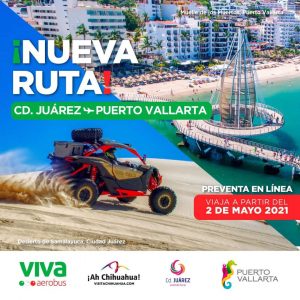 En el marco de la reactivación del sector aéreo y turístico con estricto apego a las medidas de prevención e higiene, Viva Aerobus lanzó a la venta su nueva ruta Ciudad Juárez – Puerto Vallarta.