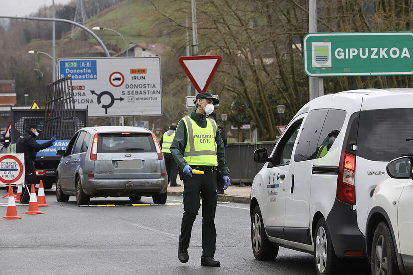 Efectivos de la Guardia Civil y de la Unidad de Intervencin Policial (UIP) de la Polica Nacional realizan controles en la frontera con Francia en una imagen de archivo del 17 de marzo de 2020.