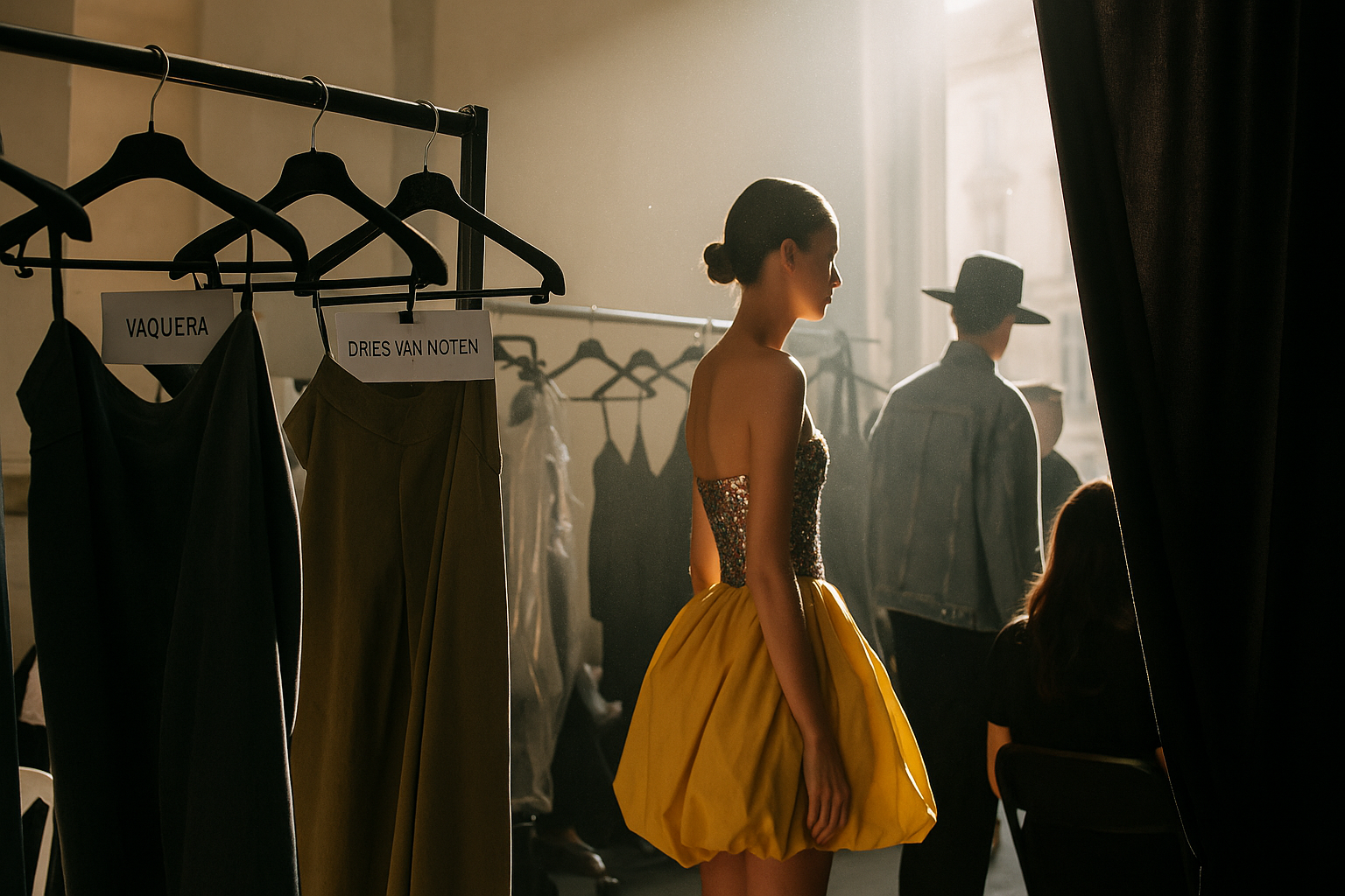 Este dinamismo se refleja incluso en la forma en que los modelos se preparan: desde la conversación informal antes de salir a escena hasta los momentos de tensión antes de un desfile. Cada risa, cada palabra susurrada, cuentan la historia de un equipo que trabaja en sinergia.
