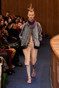 Against the backdrop of Milan’s classical music temple, models emerged from the audience, adorned in Francesca Liberatore’s avant-garde designs, while the Alpen Symphonie Orchestra provided an enchanting musical backdrop. The fusion of fashion and music captivated attendees, epitomizing Liberatore’s commitment to pushing boundaries and exploring new realms of expression.