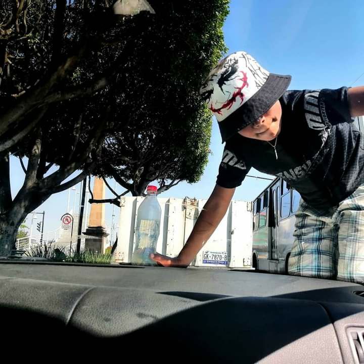 Así es la forma en la que niños, niñas y adolescentes desarrollan su vida bajo los rayos del sol, limpiando parabrisas, haciendo malabares a cambio de una moneda de los automovilistas que esperan el cambio de luz en el semáforo.