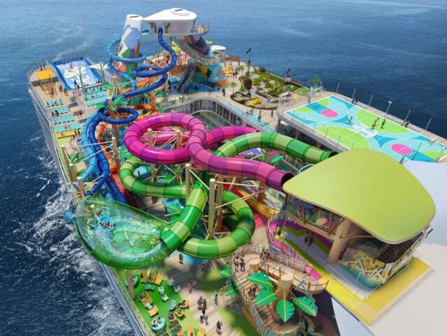 Lo que distingue a este crucero de otros es su imponente diseño y la riqueza de actividades que promete. Imagínese zambulléndose en piscinas asombrosas, deslizándose por toboganes acuáticos que desafían la gravedad, deleitándose con espectáculos de nivel mundial o simplemente admirando el océano infinito desde un lujoso balcón privado. Para aquellos con espíritu aventurero, hay simuladores de surf, paredes de escalamiento y zonas de aventura que aseguran subir la adrenalina a niveles máximos.