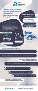 Daikin, la empresa japonesa de aire acondicionado número 1 del mundo, e INCmty, la comunidad de emprendimiento de mayor impacto en América, respaldada por el Tecnológico de Monterrey presentan la primera edición del INCmty Disruptair Challenge, un reto emprendedor que busca innovar en la industria de calefacción, ventilación y aire acondicionado (HVAC, por sus siglas en inglés).