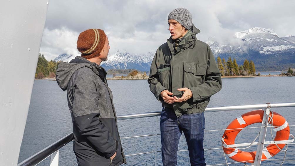 La conversacin tiene lugar en el icnico Lodge Llao Llao enclavado entre el Lago Perito Moreno y el Lago Nahuel Huapi, con las imponentes montaas andinas nevadas como teln de fondo: “Despus de un viaje as -agrega el conductor-, volvs conociendo algunos aspectos ms o menos rudimentarios, pero variados y con las ganas de volver, sabiendo que sumaste algo a tu vida. Quizs en ese momento no te diste cuenta, pero en algn momento en tu mente aparece la postal de ese lugar y una sensacin de alegra hasta en el cuerpo que vale un montn”.
