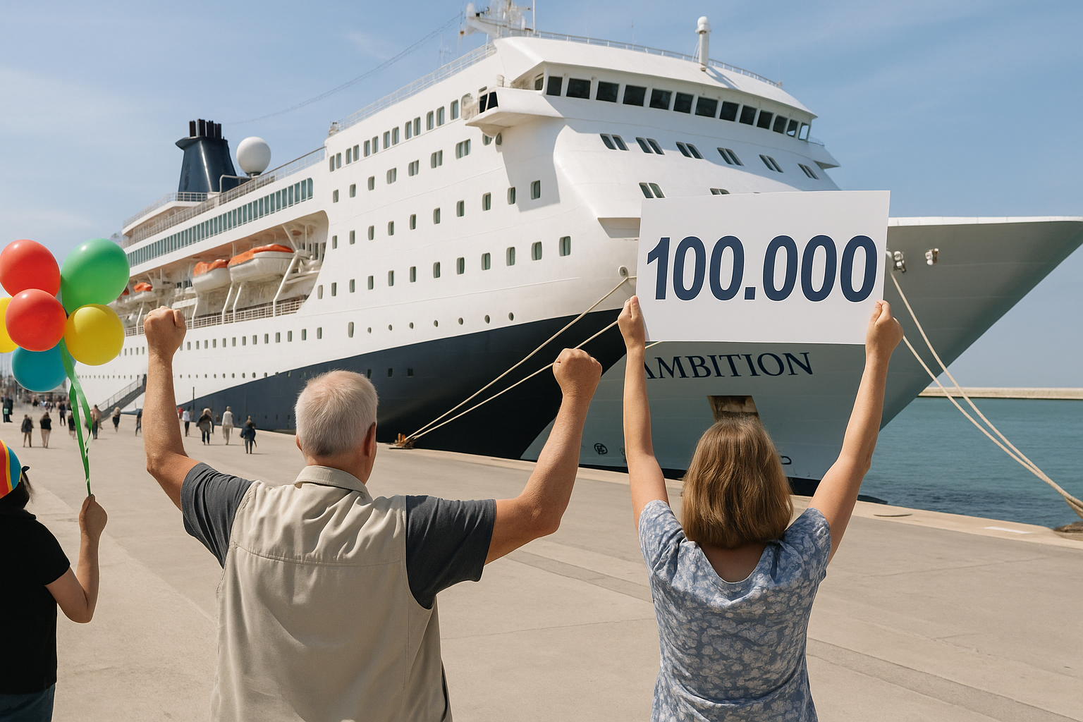 La línea de cruceros recibe a su pasajero número 100.000 a bordo del Ambition.