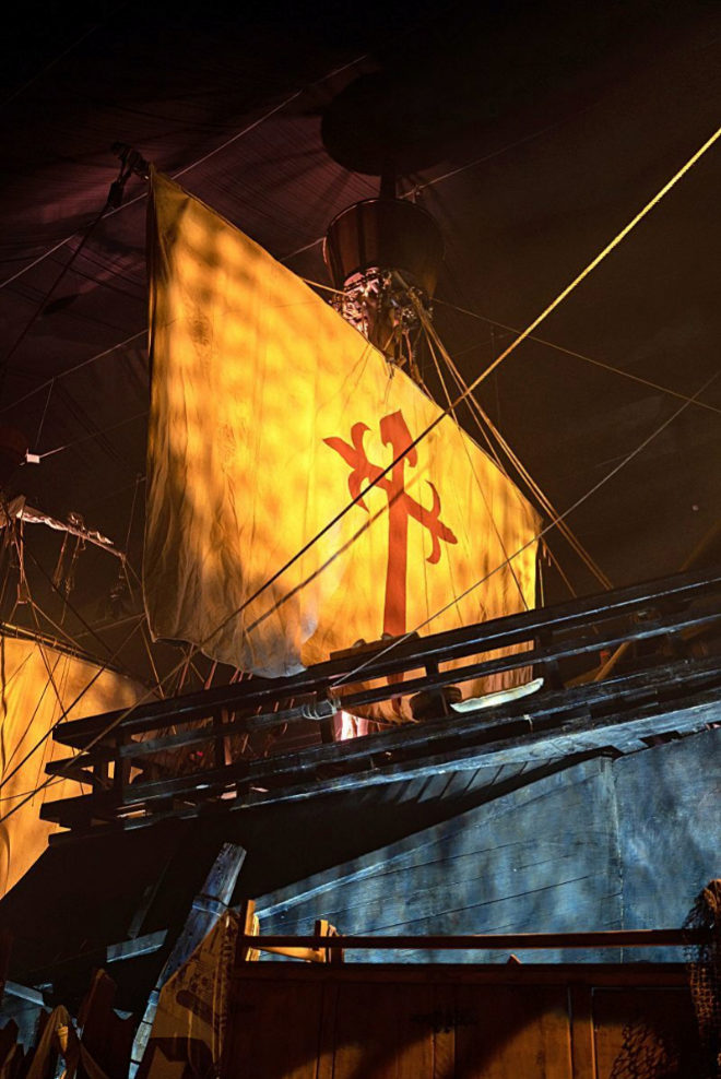 El tercer escenario es Tierra Firme, donde se puede contemplar la Nao Victoria atracada en puerto y caminar para ver como period el comercio de especias. En este momento ya puedes hacer fotos y vdeos con los marineros siguindote con la mirada.