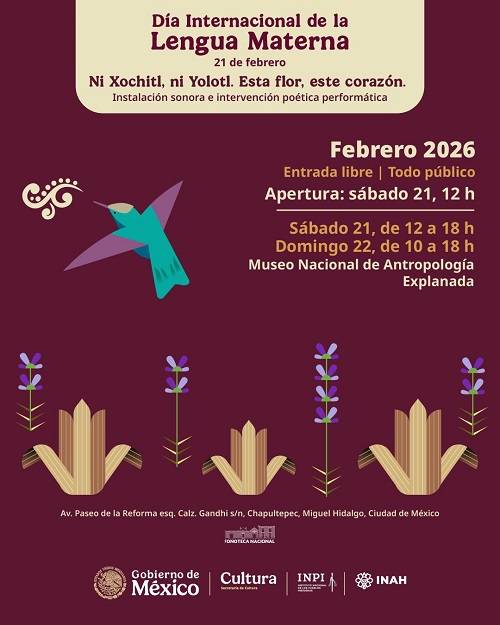 Como actividad central de esta celebración, se llevará a cabo Ni Xóchitl, ni Yolotl. Esta flor, este corazón. Instalación sonora e intervención poética performática, la cual, a partir del acervo de la Fonoteca Nacional, explorará la musicalidad y profundidad de las lenguas indígenas. El inicio del evento será el sábado 21 de febrero a las 10 h, en la explanada del Museo Nacional de Antropología
