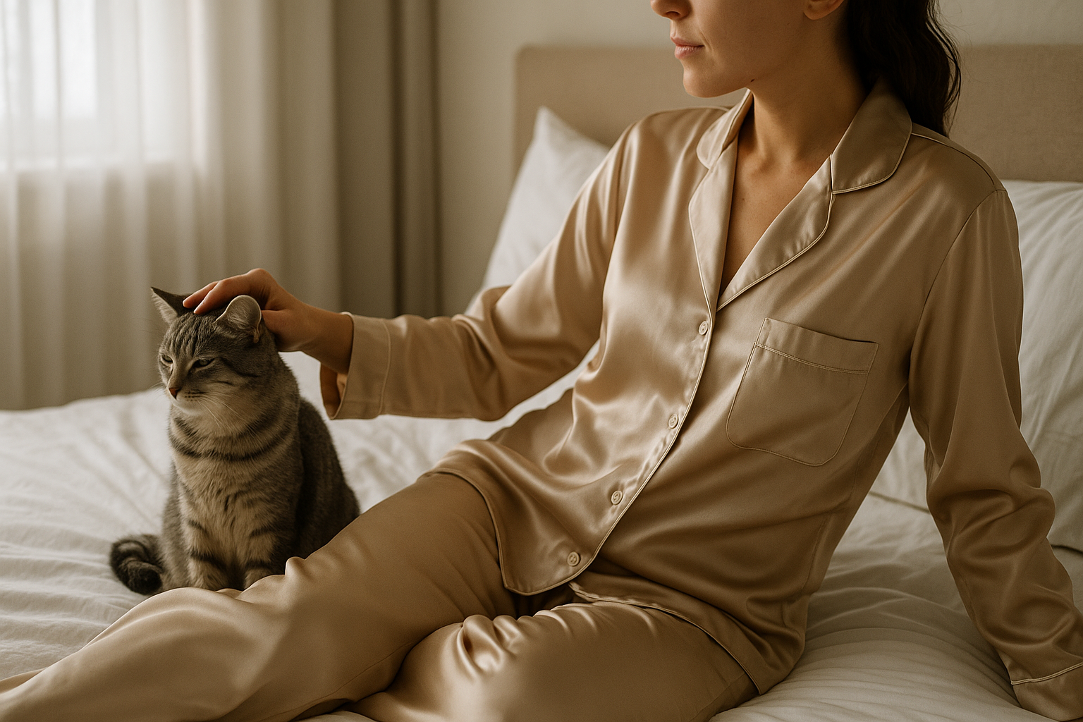 El pijama de seda no se limita a las horas de sueño. Esta prenda puede transitar con elegancia desde la intimidad del hogar hasta salidas informales. Combinado con accesorios adecuados, un conjunto de pijamas se transforma fácilmente en un atuendo chic para una cena o un evento casual. La clave está en la elección de zapatos y la incorporación de joyas que realcen la estética del look.