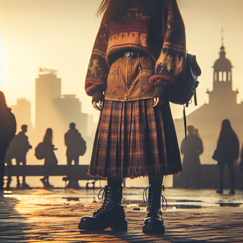 Uno de los aspectos más destacados de este look es la elección del calzado. Las botas, ya sean de combate, Chelsea o con plataforma, añaden un aire distintivo. Este tipo de calzado no solo proporciona confort, sino que también intensifica el contraste entre lo femenino de la falda y el toque rudo del calzado. La mezcla de texturas entre las telas suaves y los acabados más pesados de las botas crea un efecto visual impactante.