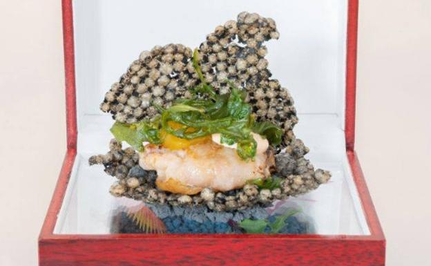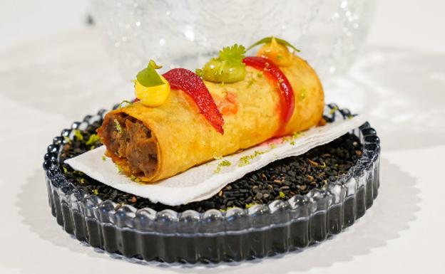 José Manuel Rodríguez volvió a lo más alto de la lista con su Cornpork, un cilindro de talo de maíz relleno con presa ibérica previamente marinada con sal, comino, pasta de chile, zumo de naranja, pimienta negra, ajo y laurel. El cocinero del