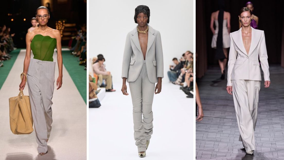 Los pantalones de oficina para primavera 2025: descubre el greige, el color que sustituye al gris y al beige.
