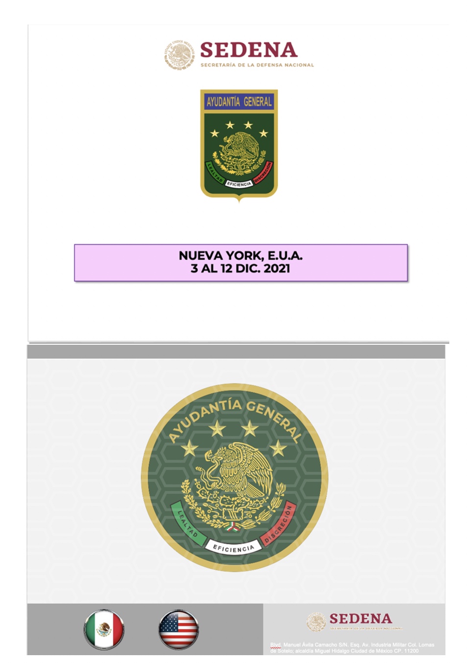 La carátula del Energy Level muestra dos círculos que albergan en el inside las banderas de México y Estados Unidos. En la base tiene un engañoso título: “Gira de trabajo en New York, EUA | Dic. 2021”. Engañoso porque sólo viajaron los invitados y los ayudantes militares. De misión oficial, ningún rastro.