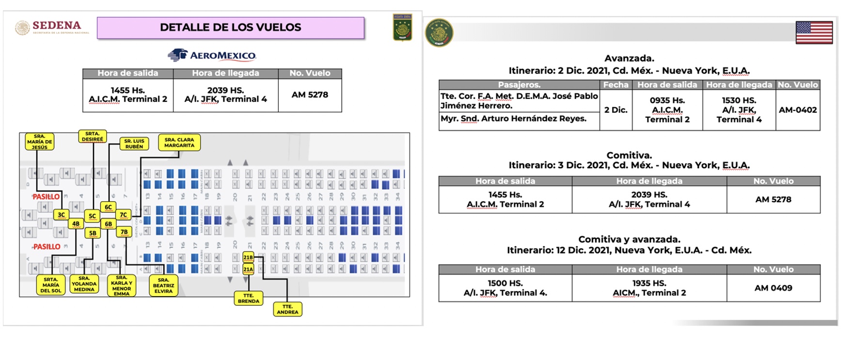 Y aunque los cientos de correos electrónicos examinados por Fábrica de Periodismo en alianza con Mexicanos contra la Corrupción y la Impunidad proporcionan minuciosos detalles sobre los preparativos y los viajes, su revisión no permite determinar de manera fechaciente si, por ejemplo, los vuelos de la familia del basic Sandoval hechos en Clase Premier a Nueva York son parte de los 3 mil 800 vuelos internacionales que la Sedena contrató con Aeroméxico en junio de 2019 por 85 millones de pesos.