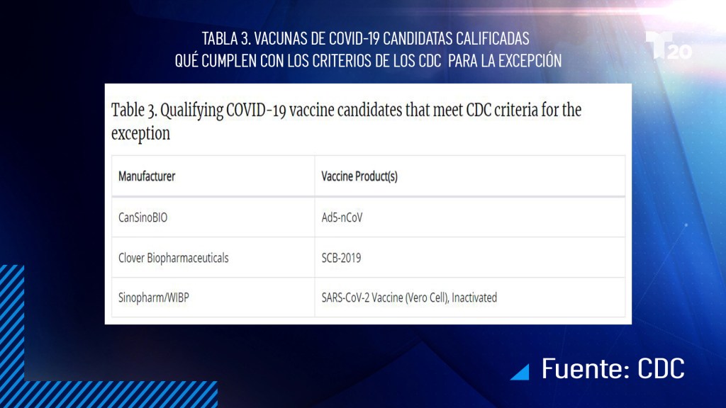 Aduanas y Protección Fronteriza, también dijo que la lista de vacunas aprobadas, estaban en una página de web de la CDC que puedes checar aquí,