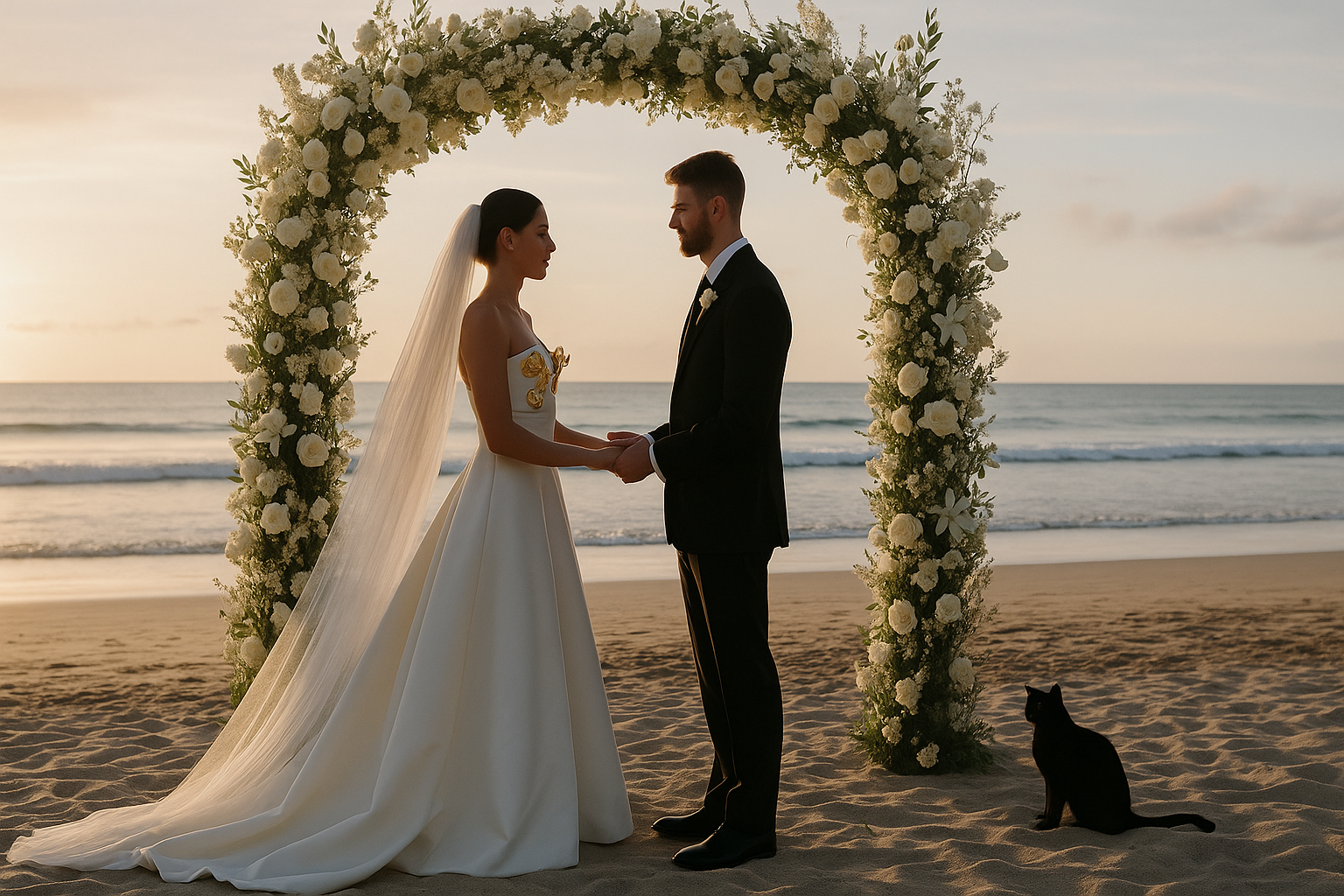 El escenario de la boda se ubicó en una de las propiedades más codiciadas de la costa, donde la naturaleza y la arquitectura se funden en perfecta armonía. Con vistas al océano y una decoración meticulosamente curada, cada elemento reflejaba la singularidad de la pareja. Las flores frescas, los candelabros brillantes y una paleta de colores sofisticados crearon un ambiente de ensueño que invitaba a ser parte de la magia.