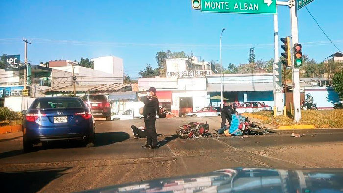 Se informó que un motociclista repartidor circulaba hacia el inside de la población, sin embargo fue alcanzado por otro conductor que pretendió ganarle el paso en el carril con dirección a la ciudad de Oaxaca.