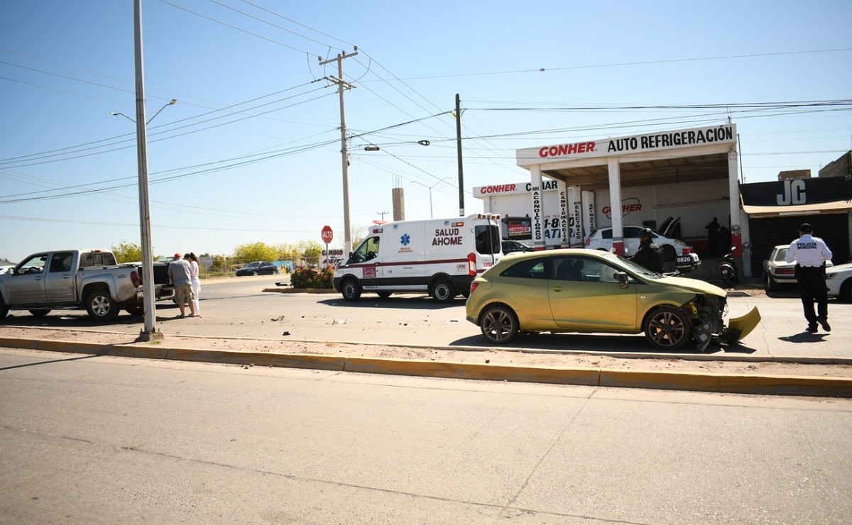 Los Mochis, Sinaloa.- Una mujer resultó con heridas en un choque entre dos vehículos ocurrido en un transitado crucero de la colonia Tepeca, en la ciudad de Los Mochis, por lo que fue trasladada a un hospital para su atención médica.