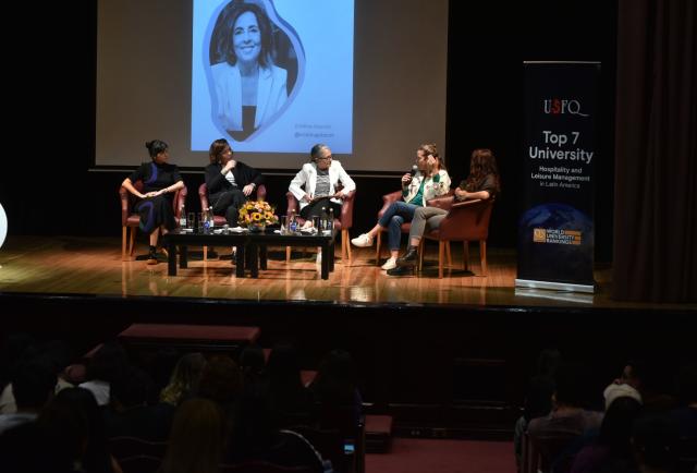 Las cocineras, entre ellas Pía León (Perú), Leonor Espinosa (Colombia), Marsia Taha (Bolivia), Laura Hernández (Colombia), Janaína Rueda (Brasil), Maribel Aldaco (México), Carmen Ángel (Colombia) se dieron cita en la Universidad San Francisco de Quito junto a la chef ecuatoriana Pía Salazar para hablar de sustentabilidad, historia, género y gastronomía.