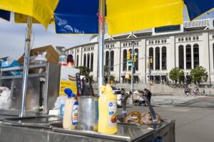 Cruzando la calle del estadio, el histórico Bronx Terminal Market es hogar de una variedad de restaurantes y tiendas. Una exhibición llamada “[R]Evolution of Hip Hop,” organizada por el Universal Hip-Hop Museum (cuya ubicación permanente actualmente se encuentra bajo construcción en el vecindario de Melrose), está programada para abrir en el mercado en mayo. Mientras tanto, los fans del hip-hop pueden dirigirse hacia el letrero de “Hip Hop Blvd” en 1520 Sedgwick Ave. Ahí es donde nació el hip-hop en 1973 cuando un DJ comenzó a rapear y tocar discos en una tornamesa para mantener a la gente bailando.
