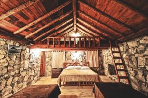 Su hospedaje que cuentan con habitaciones con capacidad de 2 a 7 personas, cabañas privadas, casa club, terraza al aire libre, transporte tipo safari y vehículos 4×4, zona de camping, de fogatas y actividades deportivas, mesas de ping pong, futbolito, juegos de mesa, cancha de usos múltiples y otros.