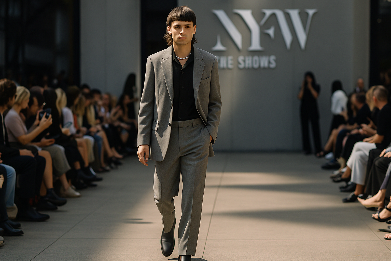 Peso Pluma triunfó con pantalones sastre y botines en la Semana de la Moda de Nueva York de Primavera-Verano 2026