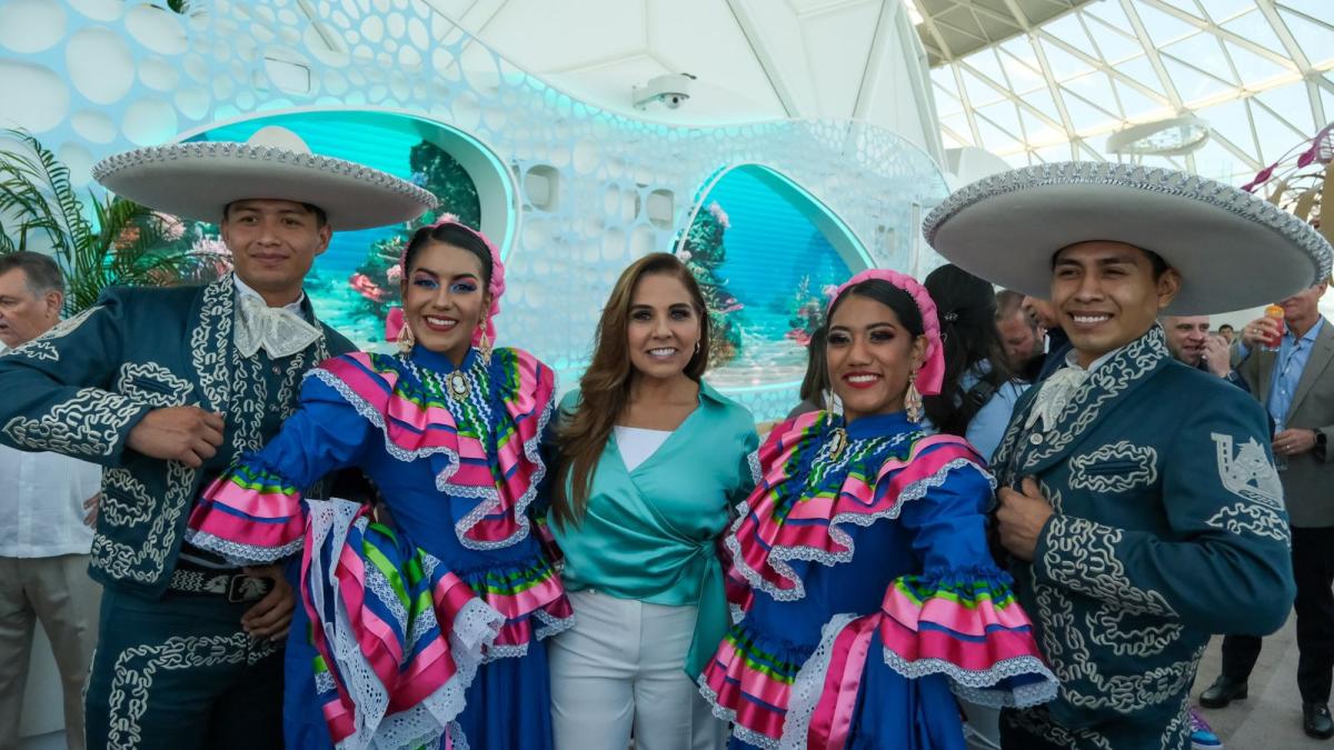 Recepción de Mara Lezama al crucero de mayor tamaño del planeta en Mahahual, Quintana Roo