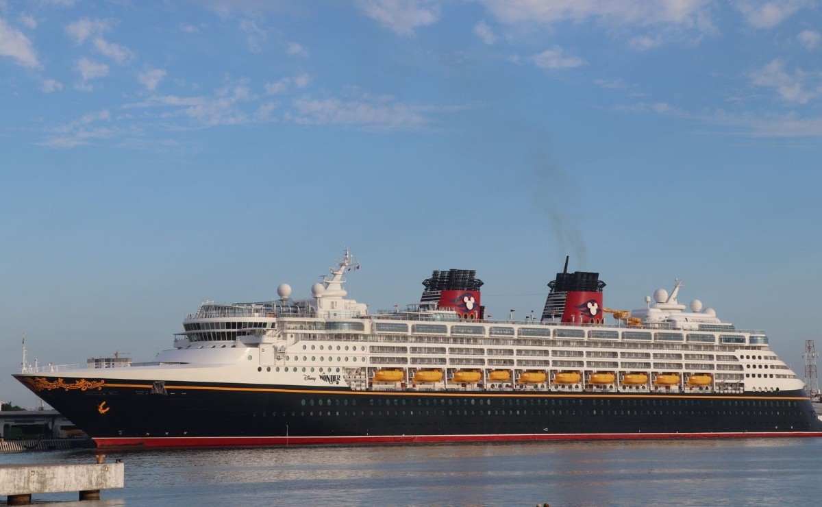 Procedente de Cabo San Lucas y con dirección a Puerto Vallarta, el ‘Disney Wonder’ trae a bordo 3,270 visitantes entre pasajeros y tripulantes.