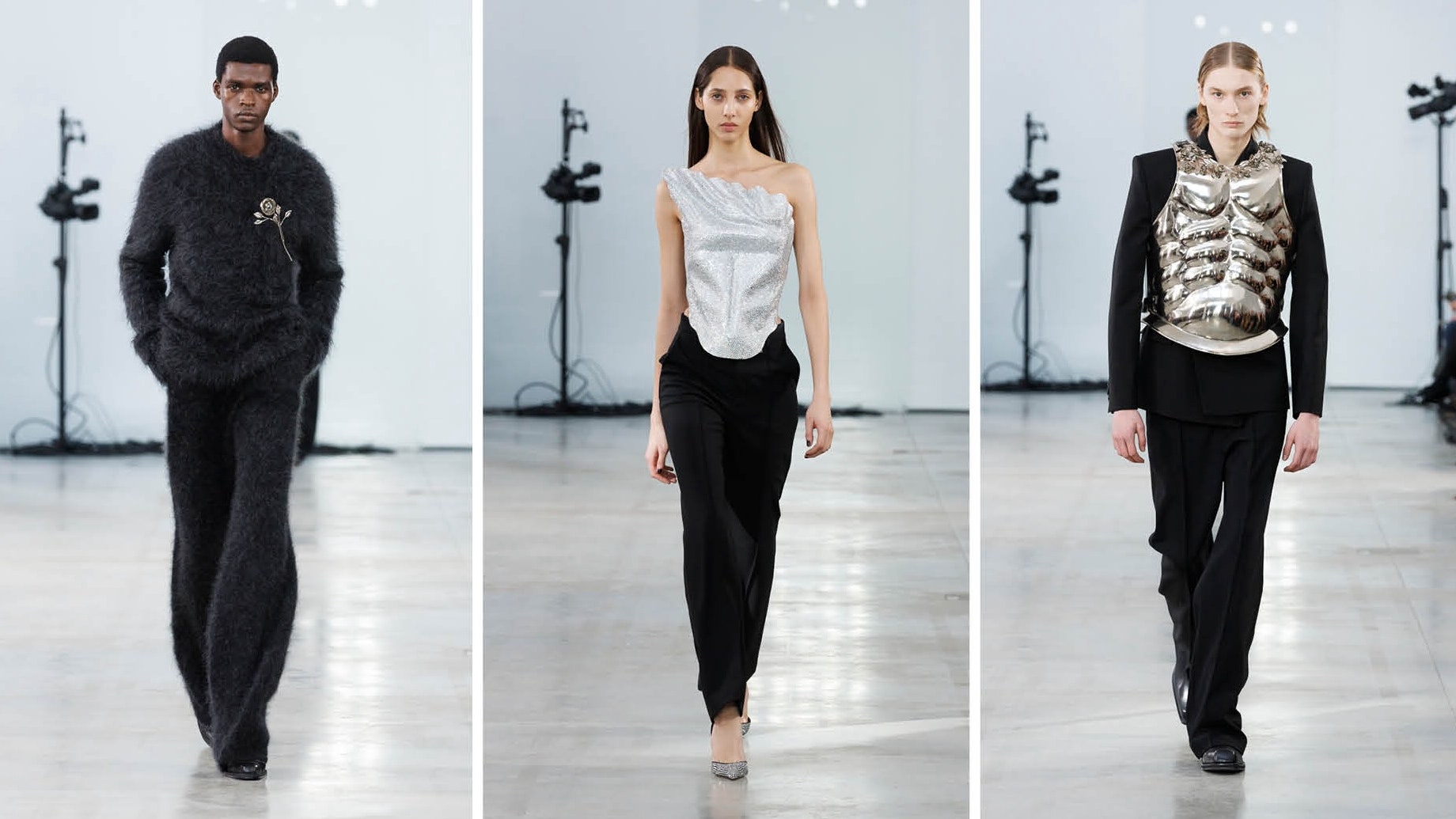Desde las antiguas armaduras medievales hasta las visiones futuristas de los robots de inteligencia artificial, el debut de di Morabito en la pasarela ha sido una experiencia que propone reflexionar sobre la identidad y el futuro de la moda. Las creaciones del diseñador no son meras prendas; son auténticas declaraciones de intenciones que desafían las convenciones establecidas, combinando estética y funcionalidad con un toque de teatralidad.