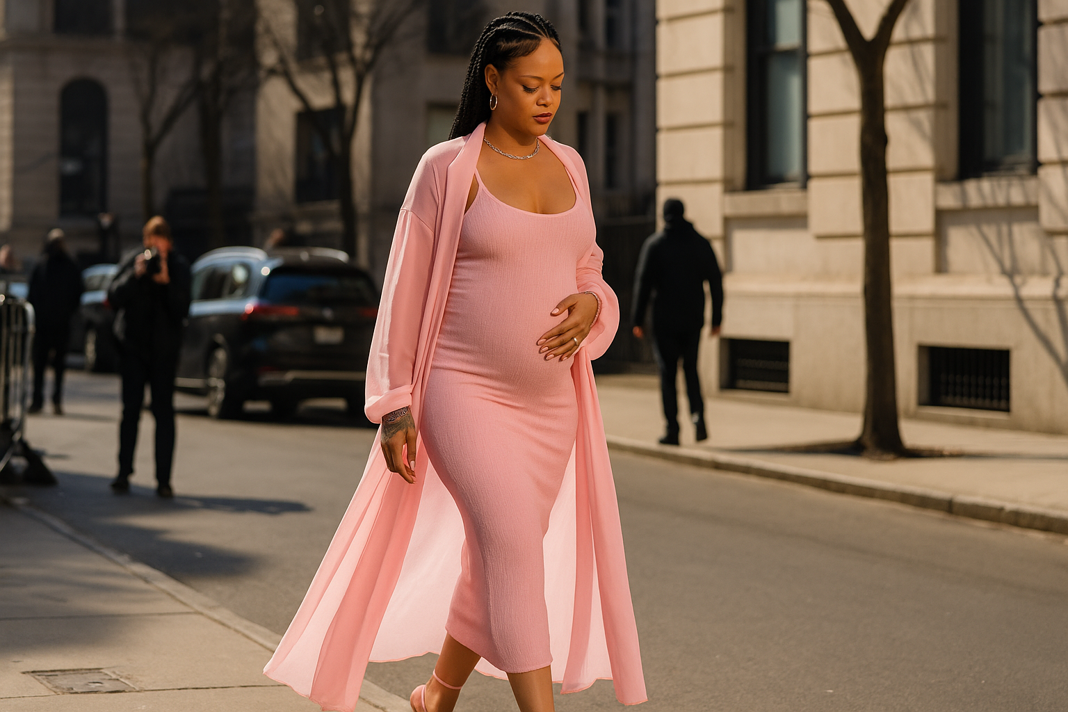 En un evento reciente, Rihanna optó por un conjunto completamente rosa que exudaba confianza y glamour. Desde su elegante blusa hasta el sofisticado abrigo, cada elemento estuvo pensado para no solo resaltar su figura, sino también para celebrar la belleza del embarazo. La paleta de colores suaves, combinada con texturas lujosas, ha captado la atención de expertos en moda y fanáticos por igual.