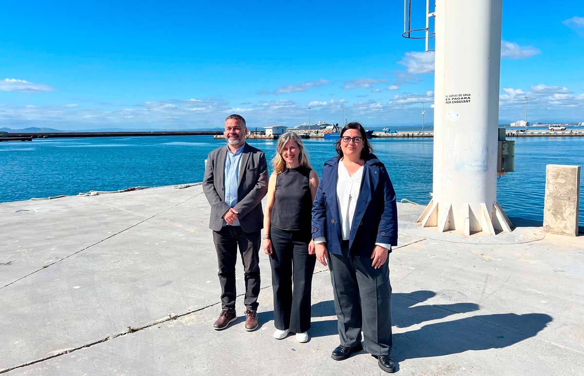 El concejal de Turismo del Ayuntamiento de Roses, Fèlix Llorens; la directora general de Transports i Mobilitat y vicepresidenta de Ports de la Generalitat, Susi López, y la directora general de Ports de la Generalitat, Esther Roca
