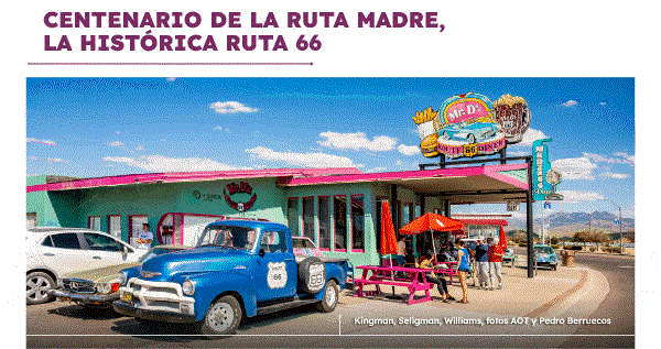 Si hay un elemento que se destaca de la cultura pop como la conocemos, sin duda es la Ruta 66, que en 2026 celebra su centenario. El pasado 11 de noviembre dieron inicio los preparativos para la gran fiesta de la que John Steinbeck bautizó como la Ruta Madre, al ser la primera que conectó el noreste con el suroeste estadounidense, desde Illinois hasta California, y de la que Arizona posee hoy el tramo más largo y en mejor estado de  conservación. Es precisamente aquí donde se han realizado infinidad de películas en los pueblitos emblemáticos, como Holbrook, Winslow, Flagstaff, Williams, Seligman, Kingman, Oatman y otros más.