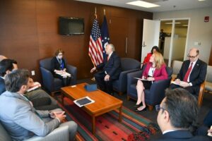 Al continuar con la gira del programa Operación Toca Puertas en Washington, D.C., Estados Unidos, el titular de Sectur sostuvo una reunión con representantes de U.S. Travel Association: Tori Emerson Barnes, vicepresidenta ejecutiva de Asuntos y Políticas Públicas; y Nan Marchand Beauvois, vicepresidenta de Membresías y Relaciones con la Industria; en donde acompañó a la comitiva, Eduardo Chaillo, consultor en turismo de reuniones, para impulsar acciones que detonen este importante segmento de viajeros.