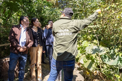 Como parte de su gira de trabajo, la secretaria visitó el Parque Nacional Barranca del Cupatitzio, un espacio emblemático del municipio. El parque constituye un referente nacional en conservación ambiental, turismo de naturaleza y aprovechamiento responsable del patrimonio hídrico.