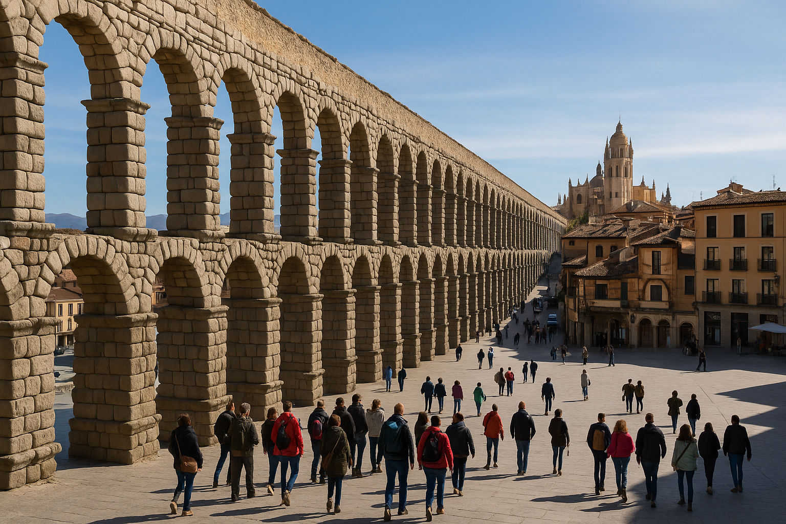 Uno de los mayores atractivos de Segovia es, sin duda, su emblemático Acueducto, una obra maestra de la ingeniería romana que ha resistido la prueba del tiempo. Su majestuosidad se complementa con las acogedoras calles empedradas que conducen a la Plaza Mayor, donde se encuentra la imponente catedral gótica, un verdadero símbolo de la ciudad. Cada rincón de Segovia cuenta una historia, desde sus antiguos palacios hasta sus iglesias históricas, invitando a los visitantes a sumergirse en un pasado glorioso.