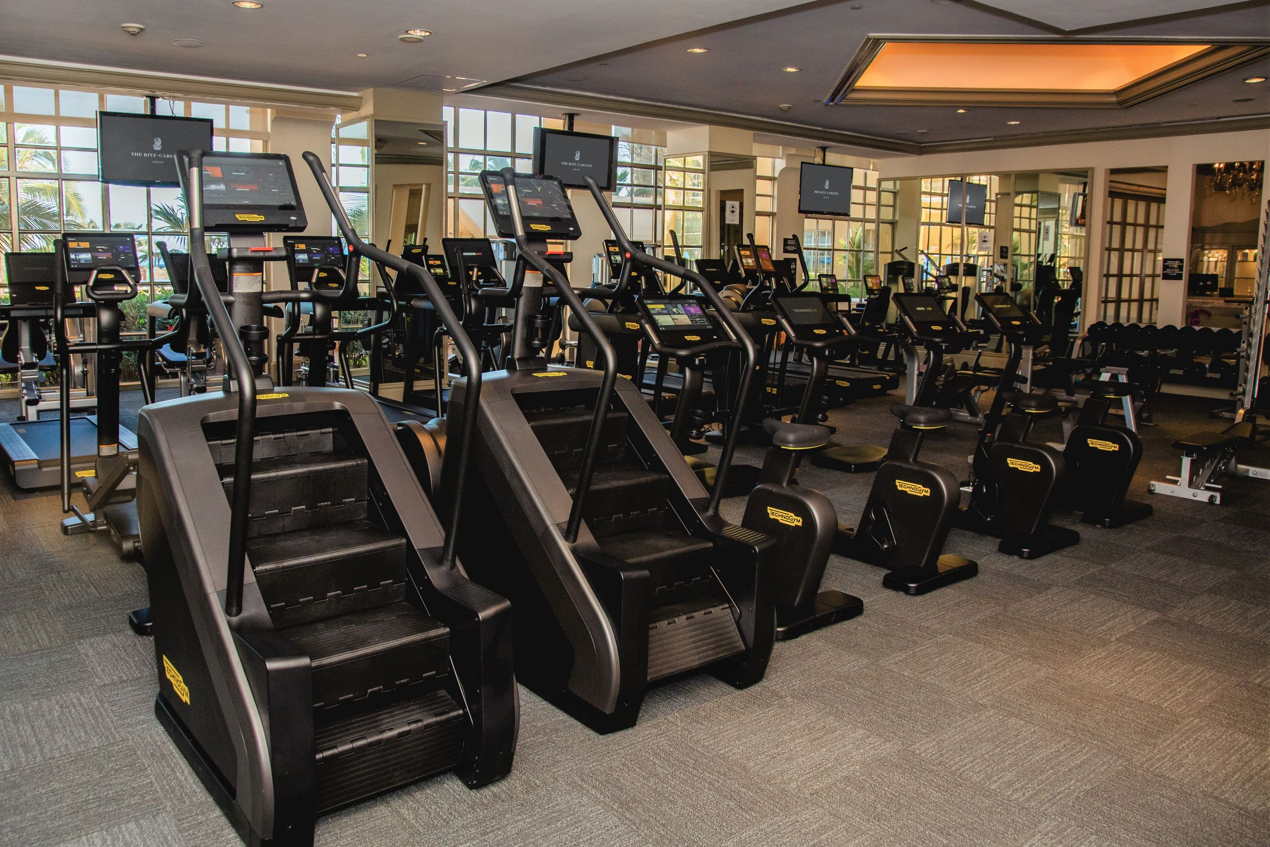 El recientemente renovado Fitness Center de The Ritz-Carlton, Cancun, es un exclusivo espacio dedicado al bienestar físico y mental; un gimnasio completamente equipado, con nuevas unidades cardiovasculares y de weight training de la prestigiosa marca Technogym.