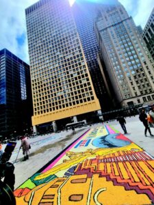 Huamantla hechas de piedras de mármol, los cuales se realizaron por artesanos que llegaron desde el Pueblo Mágico de Huamantla al corazon de Chicago en Daley Plaza.