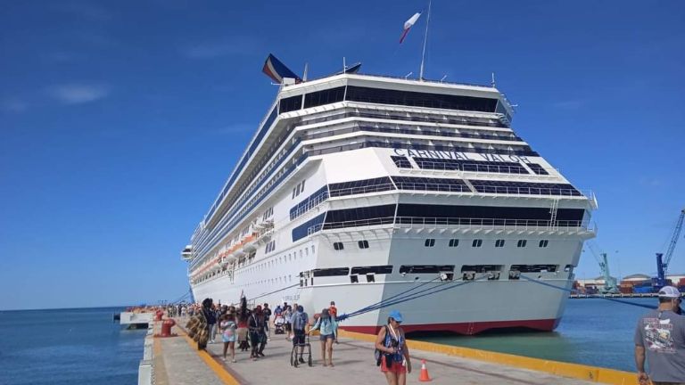 El navío desde que descendió a sus pasajeros alrededor de las 10:00 horas, al igual que los otros días de actividad se empezó a notar camiones y camionetas rumbo a otros destinos del inside del Estado, luego de salir del Muelle Fiscal con los extranjeros.